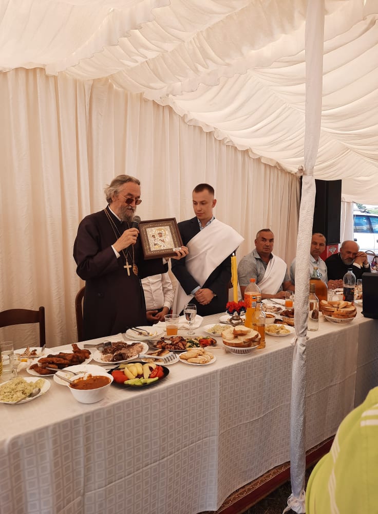 On se zahvalio domaćinima koji su mu ovom prilikom uručili donaciju za obnovu manastira Miloševac.