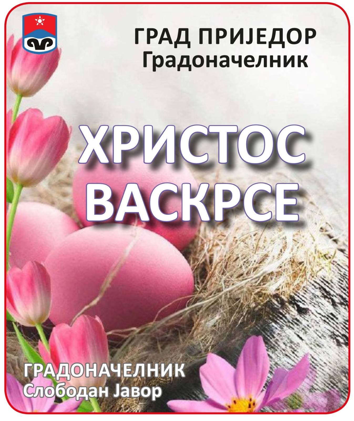 Slobodan Javor, gradonačelnik Prijedora poželio je svim građanima Prijedora katoličke vjeroispovijesti srećan Uskrs, najveći hrišćanski prpraznik. Čestitku prenosimo u cjelosti: …